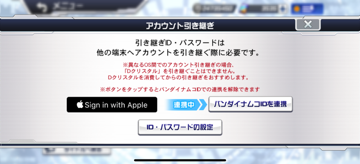 データ連携から、Bandai Namco ID連携が選択されているかご確認ください。
