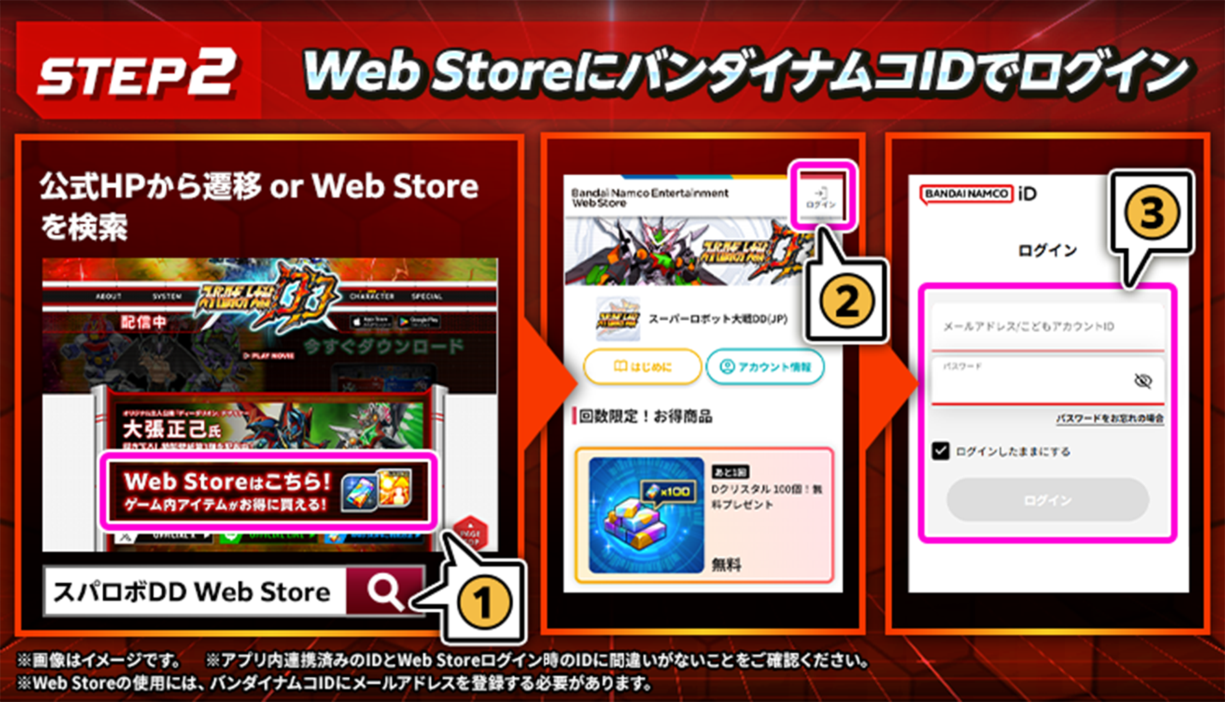 バンダイナムコIDに設定されている年齢が18歳未満となる場合、Web Storeからの商品の購入はできず、商品が表示されません。